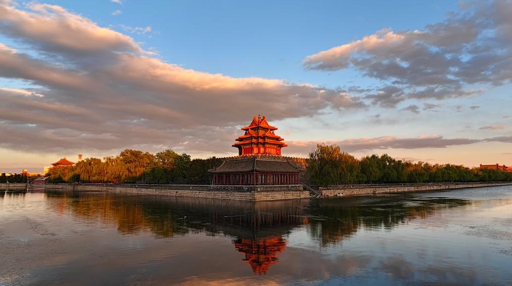 故宮の角楼、絵画のように美しい夕暮れ