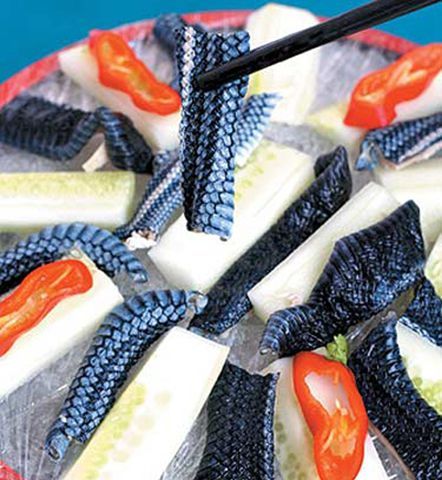 沖縄には最も「毒のある」料理がある。それはウミヘビ料理だ。沖縄のレストランでは体長1メートルほどのウミヘビが見られる。黒い蛇皮は柔らかくしなやかだが、牙に猛毒を持っている。現地の人は「このヘビ肉は格別に栄養がある。沖縄の人が大事なお客様に振る舞う料理だ」という。