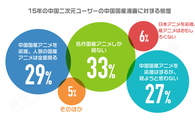 中国のアニメ産業はまだ最も良い時代を迎えてはいないかもしれないが、中国アニメにとって最も良い段階は到来しつつある。年齢層問わないアニメが大人の消費を促進していることや、二次元(アニメ・漫画・ゲーム)ファンが拡大していること、生産・製作・宣伝・マーケティングなどの産業チェーンの整備が進んでいること、クラウドファンディングなど融資のスタイルが多元化していることなど、中国アニメが台頭できる条件は揃いつつある。(編集KN)