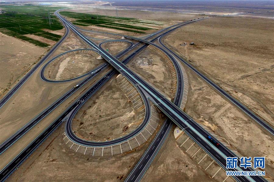 (10)2017年7月15日、甘粛省酒泉市で撮影された、間もなく開通する京新高速道路の様子。北京市と新疆維吾爾(ウイグル)自治区を結ぶ同高速鉄道の内蒙古(内モンゴル)自治区臨河区-新疆哈密市区間の幹線道路が完成して運行がスタートし、北京と新疆を結ぶ最も便利な高速道路の一大ルートが完成し、北京-烏魯木斉(ウルムチ)間の移動時間が大幅に短縮された。