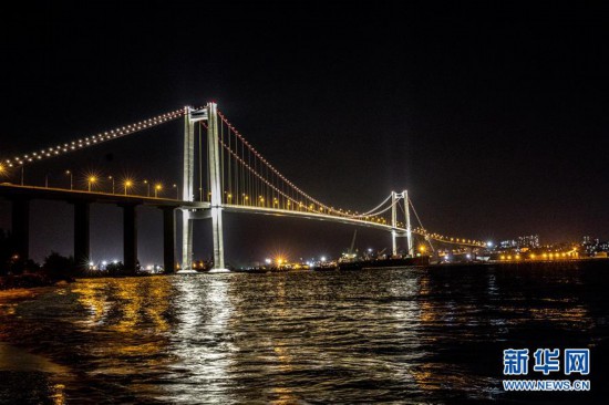 モザンビークのマプト大橋の夜景(新華社4月9日撮影)
