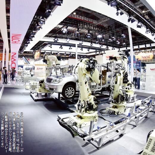 日本の総合機械メーカー「不二越」(NACHI)は、今回の輸入博に高速・多用途の超速ロボットSRAシリーズを出展。自動車の組み立てシミュレーションを披露した(vcg)