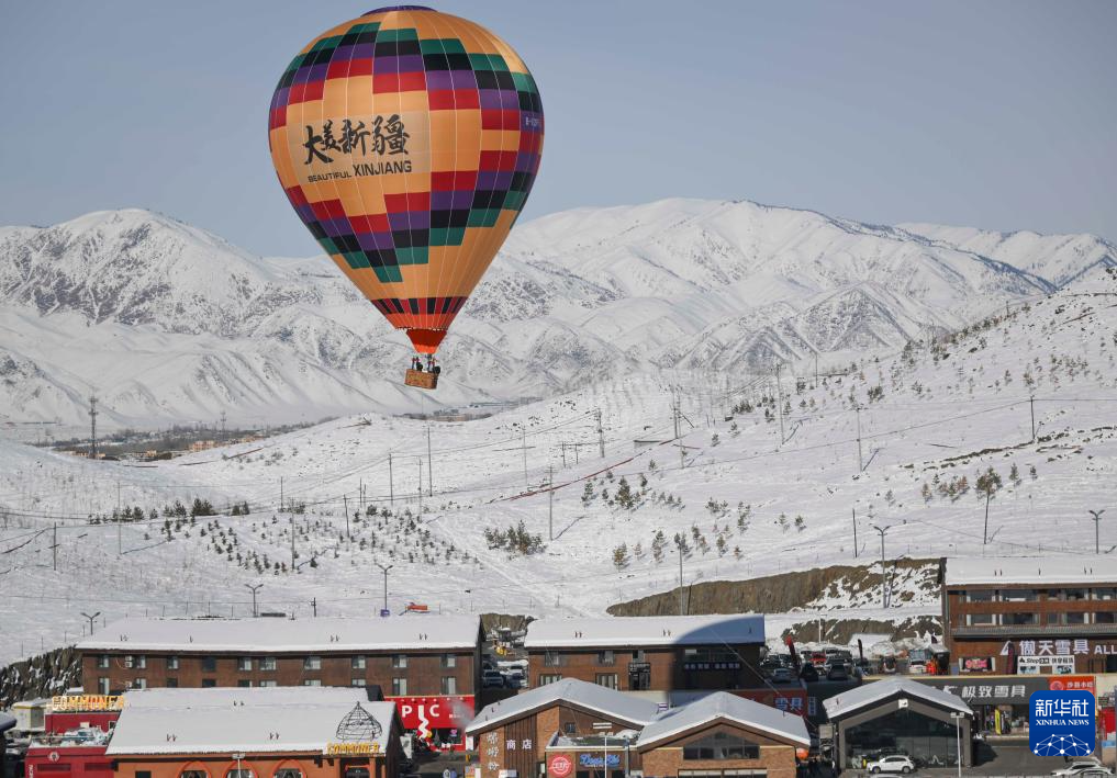 将軍山国際スキーリゾートで25日、観光客が熱気球に乗った。