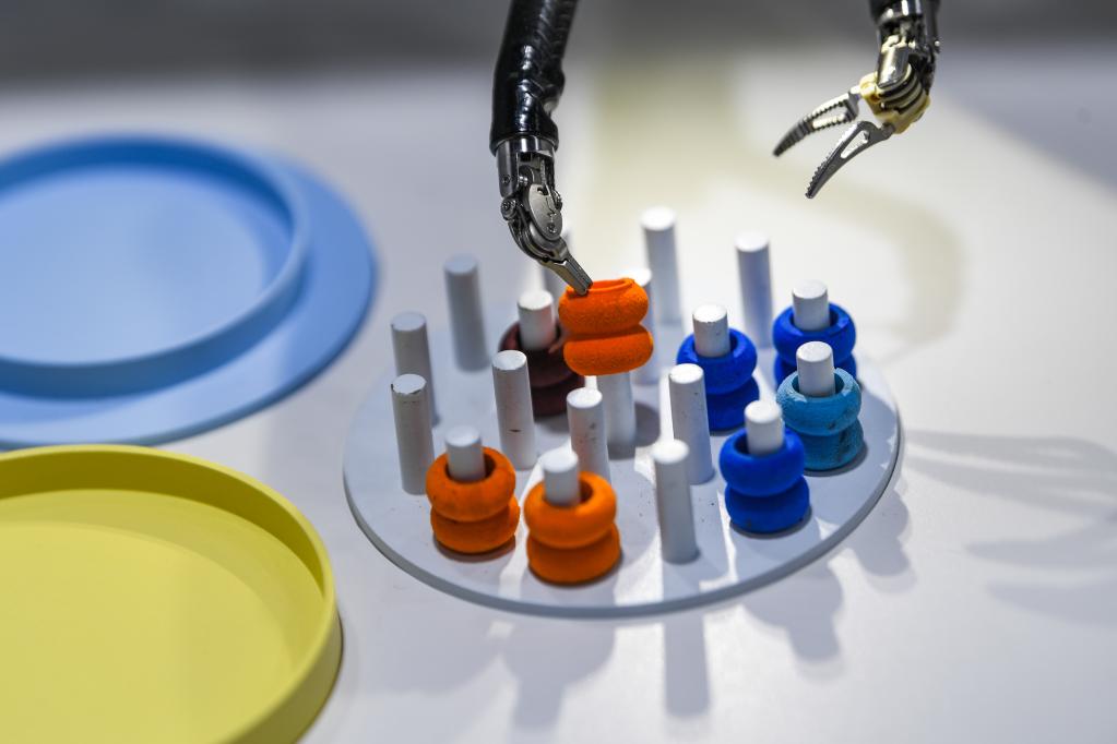3月14日に中国医療機器展覧会2025で撮影された、手術ロボットによるデモンストレーション。新華社記者・王全超撮影