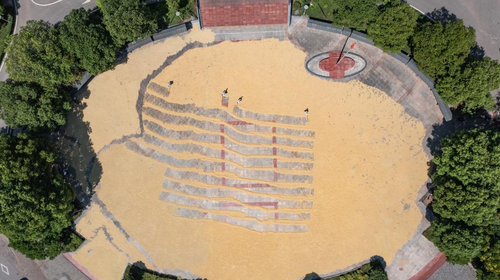 【新華社重慶8月21日】中国重慶市永川区でイネが成熟期を迎えた。穀物を天日干しする場所を確保するため、現地の基層政府は役所の庭や文化広場などの公共エリアを農家に提供。村には豊作の風景が広がっている。