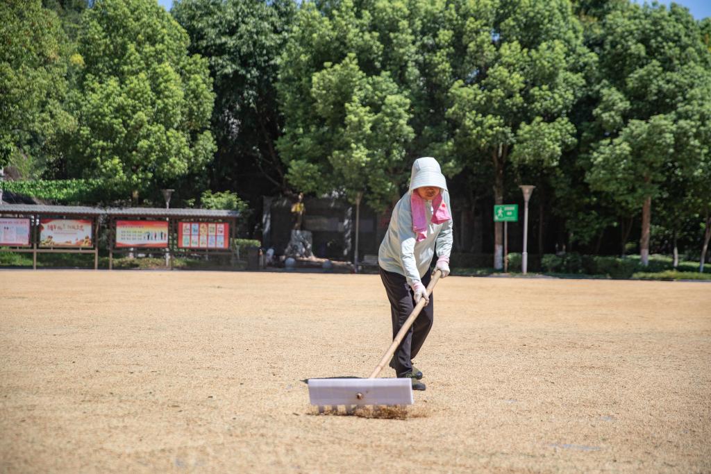 20日、重慶市永川区紅炉鎮の政府広場で、穀物を天日干しする人。(重慶=新華社記者/黄偉)