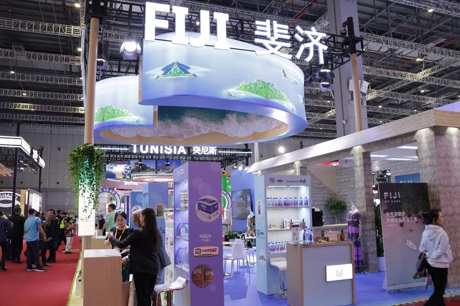 5日、国家総合展に設けられたフィジー館。(上海=新華社記者/藍建中)