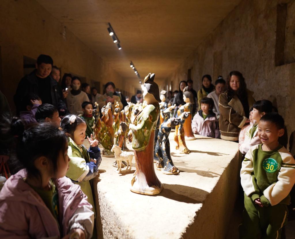 5日、河南省洛陽市孟津区の唐三彩文化園を見学する観光客。(洛陽=新華社記者/戴明軒)