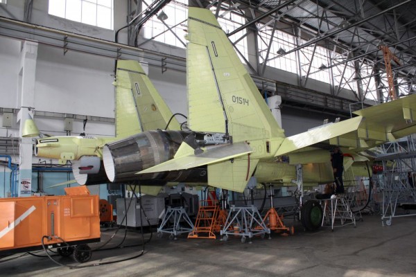 スホーイの工場内で組み立てられるSu-35