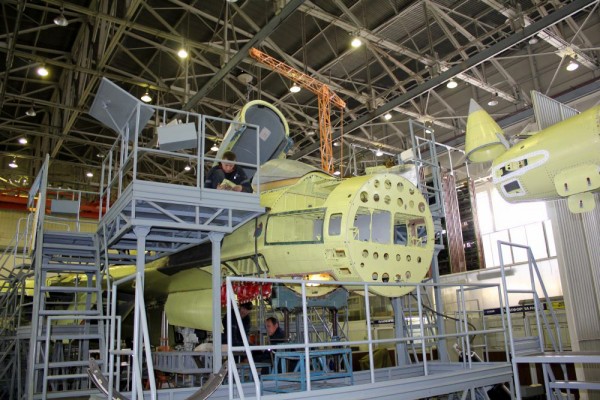 スホーイの工場内で組み立てられるSu-35
