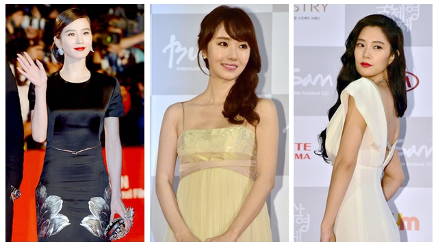 黑色刺绣印花礼服裙搭配盘发红唇妆容,刘诗诗以这样的造型迎接开幕式红毯,虽然整体造型让诗诗看起来更成熟了一些,但是正是这样的气场震撼了韩国媒体,给中国女星撑足了场面。
