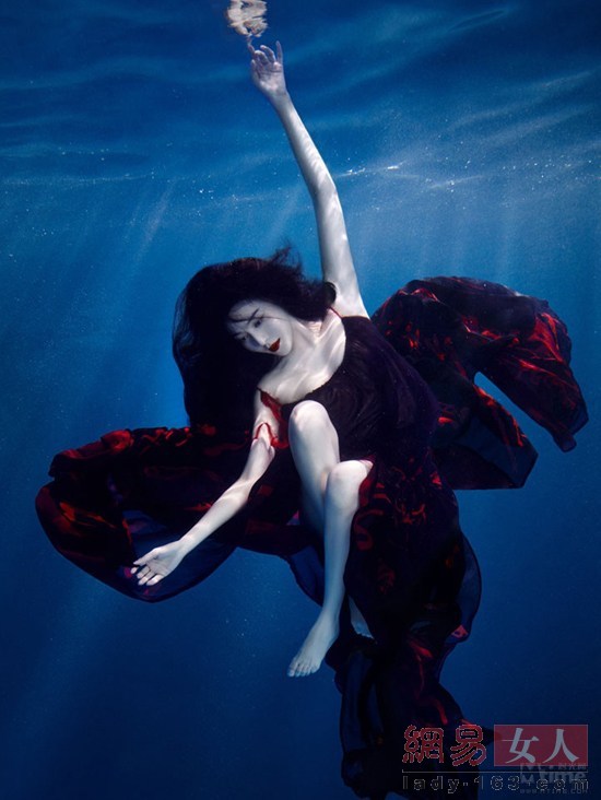 女性タレントの水中での美しい写真