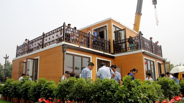記者が現場を訪れたところ、現場には1台のクレーンのほか、リビング、寝室、台所、トイレなどのブロックがそれぞれあり、作業員はこれらを一つ一つ吊り上げて組み立てていき、わずか3時間足らずで2階建ての別荘が完成した。