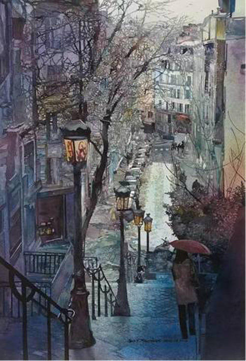 米ミネソタ州出身のジョン・サルミネンさんは、独特な水彩画で世界の油絵界から名声を得ている。彼はこれまでに様々な風景を目にし、多くの水彩画を描いてきたが、中国を訪れた時、ごく普通の風景を描き、彼自身も驚いた。彼が表現したいのは心の中にある古く伝統的で奥深く、神秘的な中国である。