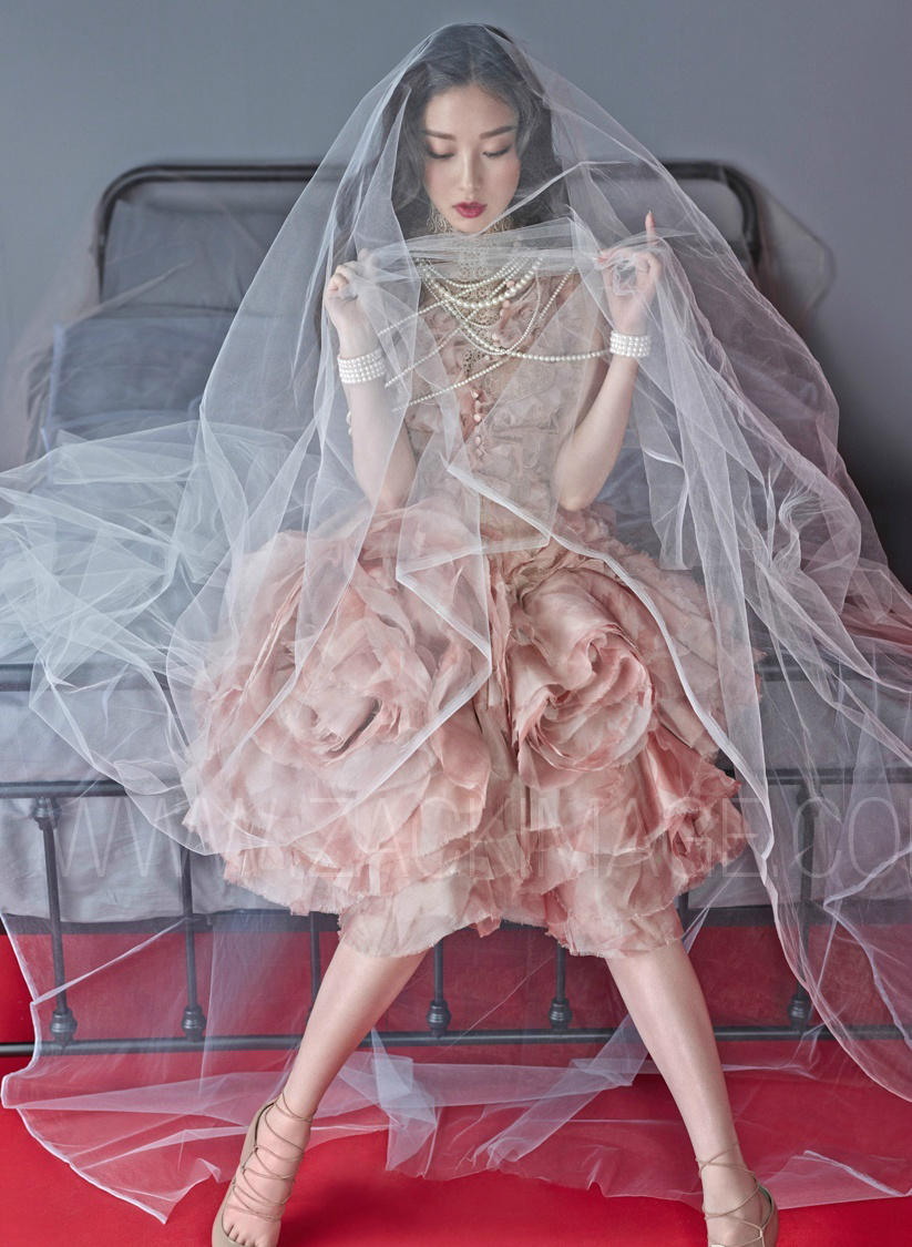 ニー・ニー、花嫁のようなスカートで写真撮影