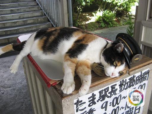 生前の「たま」の勤務中の様子。のんびりと過ごし、可愛ければよい