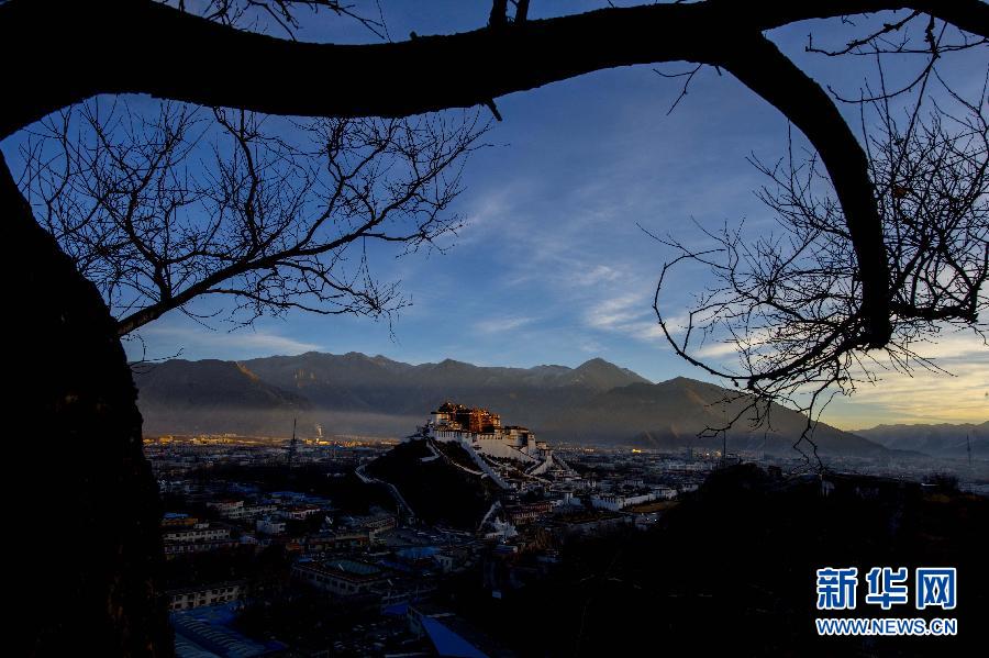 早朝のポタラ宮(2014年1月14日撮影)。チベット自治区は中国の重要な生態の障壁であり、アジアひいては世界において重要な意味を持っている。チベットは経済、社会の規律を守りながら発展し、自然を犠牲にすることなく経済、社会、生態の調和に重視し持続的な発展の道を歩んできた。チベットは世界で環境が最もよい地域の1つであり、その多くの地域が原始的自然を維持している。