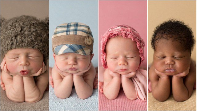 新生児は両手を頬にあて、両足を曲げ、目をきつく閉ざしており、深い眠りについた様子だ。まるで可愛らしい小さなカエルのようで、見る者を魅了し、赤ちゃんの純粋さと美しさを余すところ無く示している。