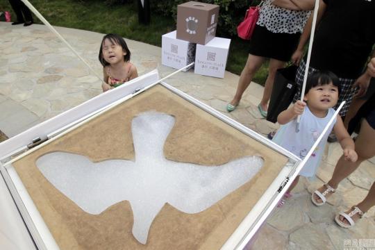 8月16日、河南省鄭州市沙口山の通りで、人工の「白い雲」が市民の注目を集めた。星、ハート、綿あめなどの形をした「雲」は子供たちを引きつけた。これらの箱を管理する男性によると、箱は「雲製造機」で、空気より軽い圧縮ガスと箱の中の発泡液が混ざり空中に浮き、数百メートルの高さまで浮くことができる。この「雲製造機」が作る「雲」は1日に1万元以上の利益をもたらすという。