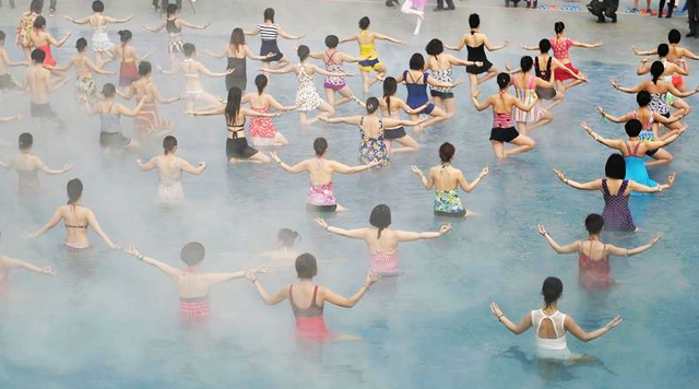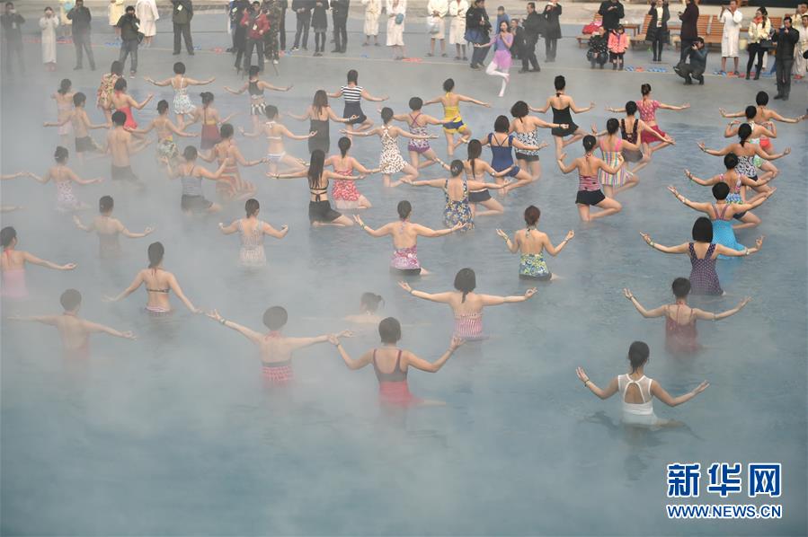 河南省洛陽市のヨガ愛好家は17日、温泉内でヨガを披露した。100人弱のヨガ愛好家が同日、河南省洛陽市の鳳翔温泉荘園内でヨガを披露した。湯気が立ち込める中、ヨガ愛好家の姿が見え隠れし、あたかも仙境にいるかのようだ。