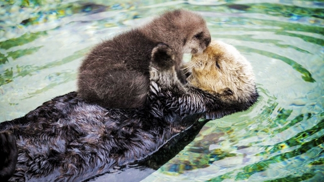 このカワウソの赤ちゃんは一日中、お母さんのお腹の上で安眠する。ぐっすり眠った様子はかわいらしく、やさしく守るお母さんの姿勢も感動的だ。母子の快適な生活も羨ましい。