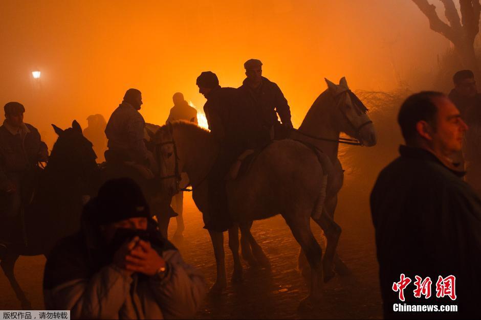 スペインのサンバルトロメ・デピナレスで現地時間1月16日、男性が馬に乗り炎を飛び越え、聖アントニオ祭りを祝った。現地人は毎年1月16日に、聖アントニオ祭りを祝う。聖アントニオは動物の守護神とされている。