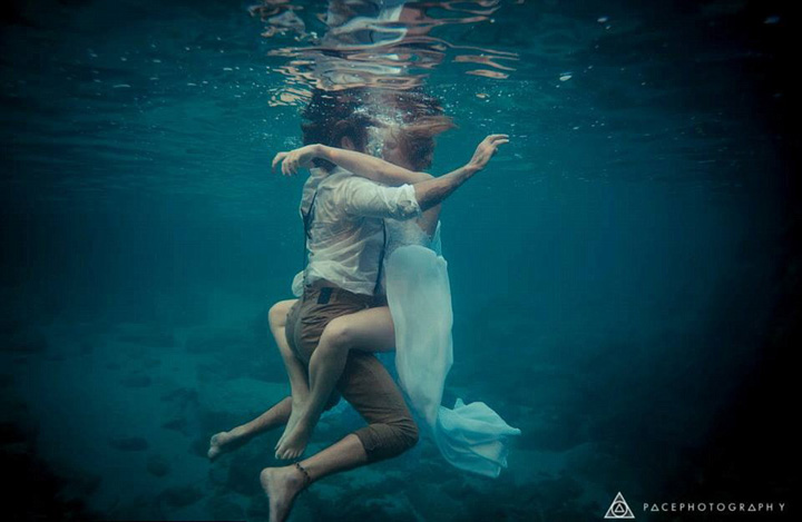 新婚夫妇拍摄水下唯美婚纱照成新时尚