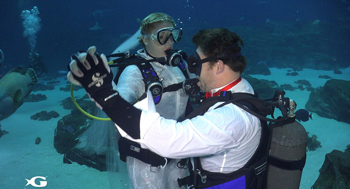 新婚夫妇拍摄水下唯美婚纱照成新时尚
