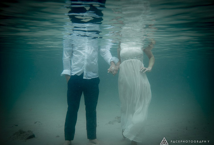 新婚夫妇拍摄水下唯美婚纱照成新时尚