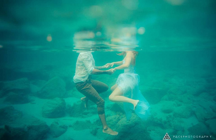 新婚夫妇拍摄水下唯美婚纱照成新时尚