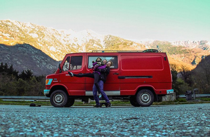 年轻夫妇携宝宝乘改装消防车畅游欧洲