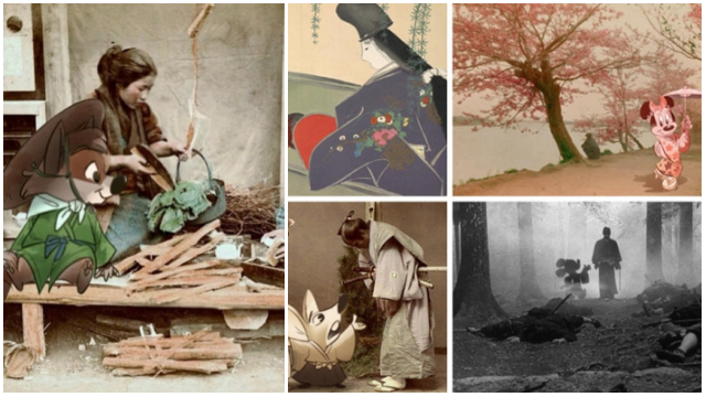 武士になったミッキーマウスや、和服少女になったミニーマウスなど、作品の中のキャラクターは新しい生命を授かっている。
