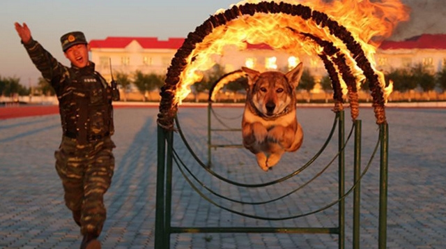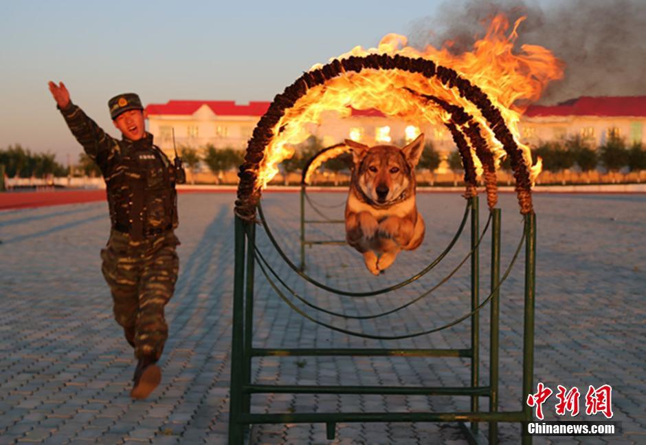 特戦隊員が5月13日、軍用犬を連れて林を抜け、協力して人質を解放し、爆発物の捜索・処理を行った。これらは、武装警察兵団指揮部第7支隊が実戦を想定して行った人と犬の共同訓練の様子である。