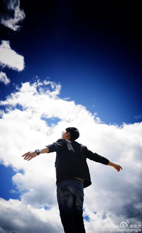 歌手の張傑(ジェイソン・チャン)は青空を背景にした後ろ姿を公開し、リラックスし自信を持つように受験生を励ました。