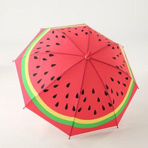 暑い夏に真っ赤なスイカの傘を見たら、喉の渇きが少しは和らぐかもしれない。