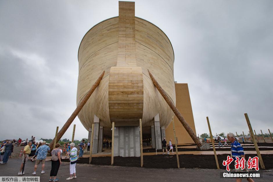 7月5日、米ケンタッキー州のウィリアムズタウンにできたテーマパーク「アーク・エンカウンター(方舟と遭遇)」にあるノアの方舟のレプリカ。米ケンタッキーに7月7日、ノアの方舟を題材としたテーマパークがオープンした。テーマパークの建物は長さ155メートルで木製の巨大船の形をしている。