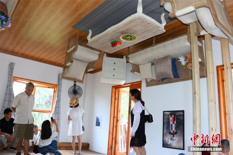 7月19日、浙江省奉化市渓口鎮に逆さまの別荘が現れた。別荘の中には不思議な光景が広がっており、すべての物が天井にくっついて逆さまにつき、無重力状態のようである。