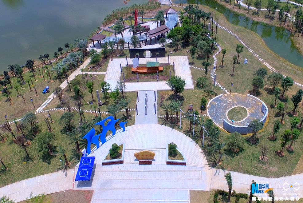 広西園林園芸博覧会を空撮 色とりどりの玉林市