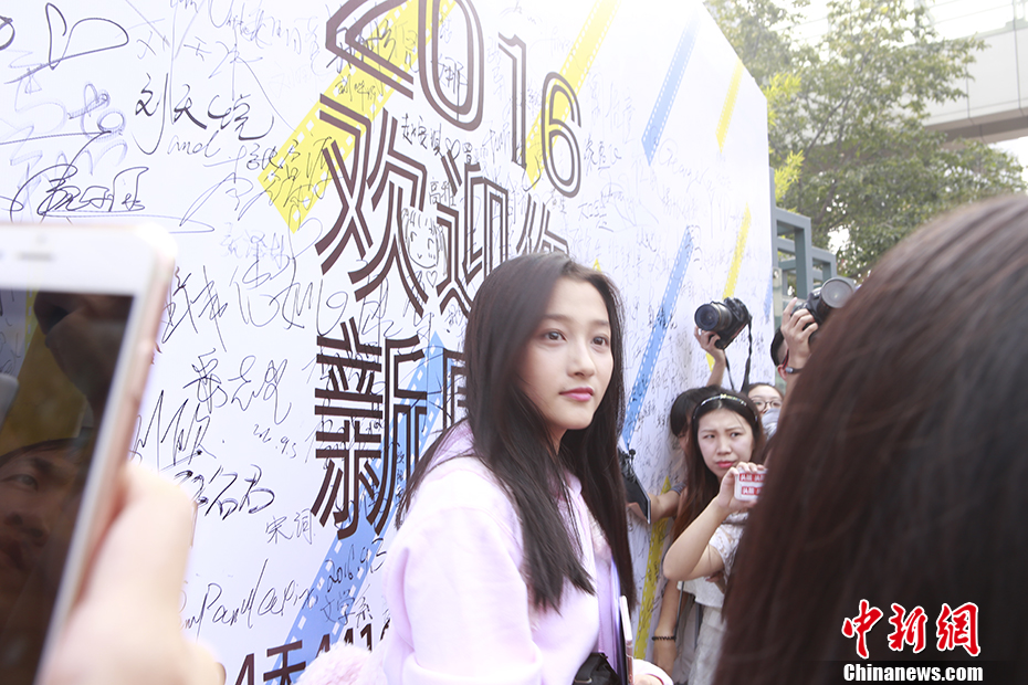 「国民的美少女」の関暁彤(グアン・シャオトン)が9月4日、ピンク色の服を着て帽子をかぶり、入学手続きをするため北京電影学院を訪れ、記者に囲まれた。