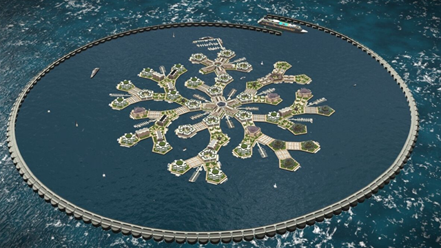 同プロジェクトは2019年に着工予定。将来、この都市は水産物の養殖、保健医療、持続可能なエネルギーを特徴とする。初の海上都市は11の四角と五角形のプラットフォームからなり、それぞれ長さ50メートル・幅50メートルで、建物の保護と生活に適した大きさになる。