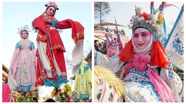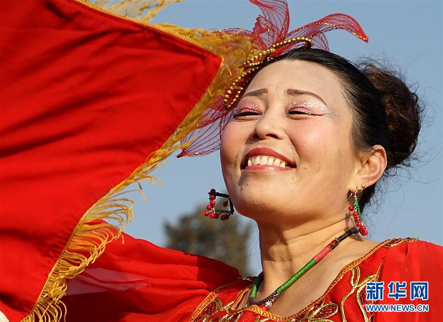 2月12日、河南省浚県の民間行事でヤンコ踊りを披露する役者