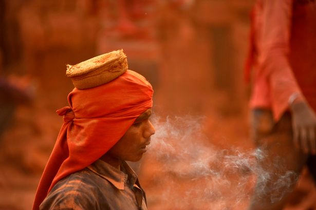 ネパールのレンガ工場 低賃金で埃まみれで働く