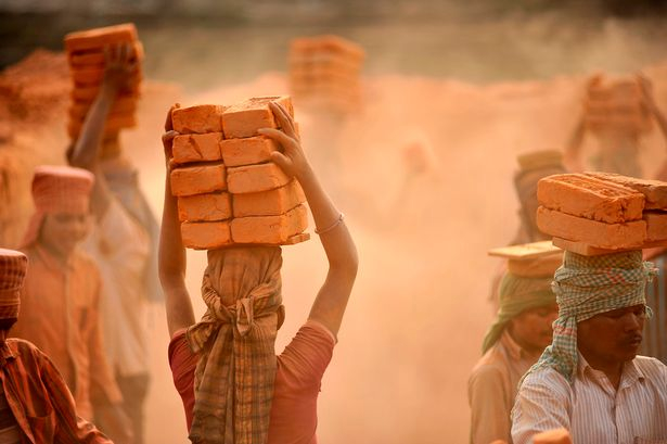 ネパールのレンガ工場 低賃金で埃まみれで働く