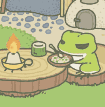 ゲームではかえるの「おうち」に入ることもできる。その中は一部屋だけで、下がリビング、上がベッドというシンプルな構造だ。かえるは旅から帰ると、お腹がすいた時は下のテーブルでご飯を食べたり、お腹がいっぱいになると何かを作ったり、ベッドで本を読んだり、机で手紙を書いたりする。ほとんどの時間、プレイヤーはかえるを眺めているだけで、まったりとした時間が流れる空間を楽しめるため、癒し系で、多くの人が「かわいい」と絶賛している。