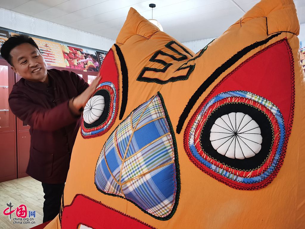 河南省周口市で23日、無形文化財の伝承者である「老虎雷」こと雷智超さんが布製の虎「布老虎」を作った。