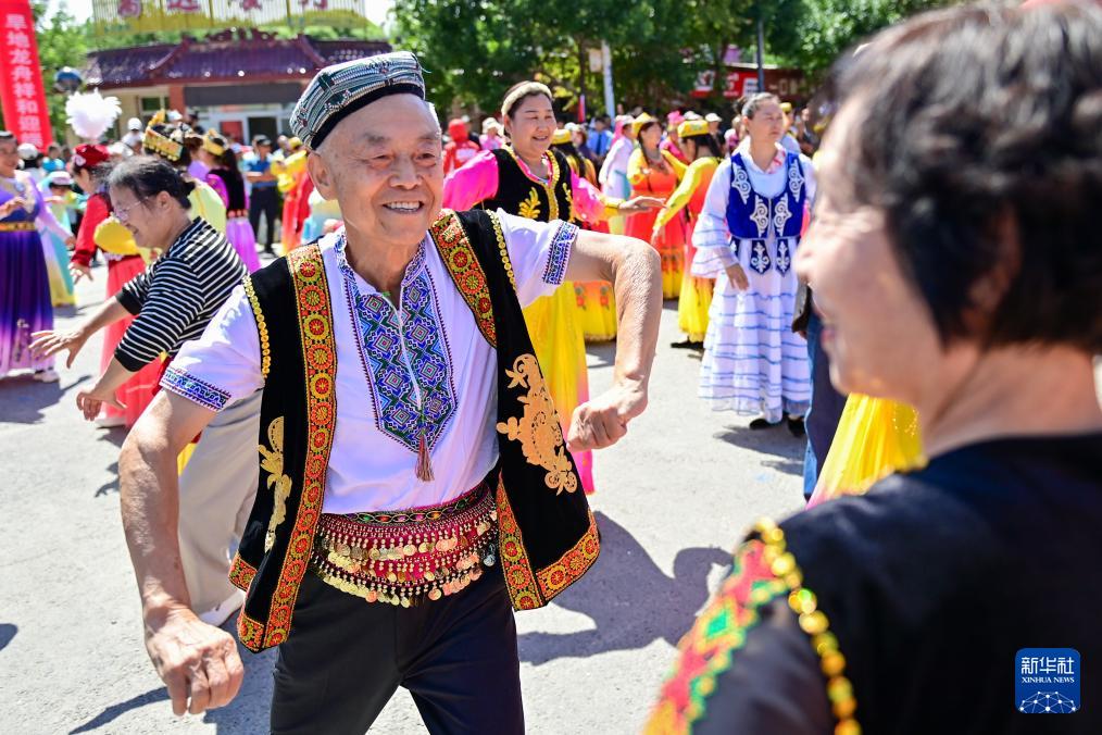 新疆烏蘇市で千人民族舞 「陸上ドラゴンボート」で端午節を祝う