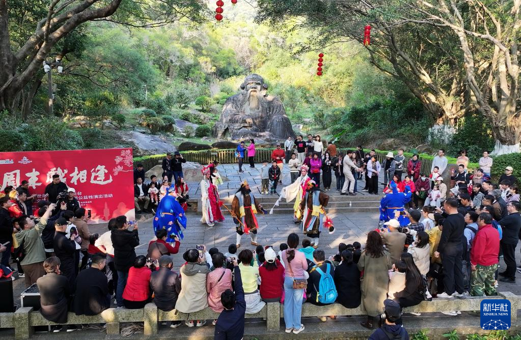 泉州市文化・観光局が泉州清源山老君岩風景区で開いた没入型公演。(2月15日撮影、福州=新華社記者/林善伝)
