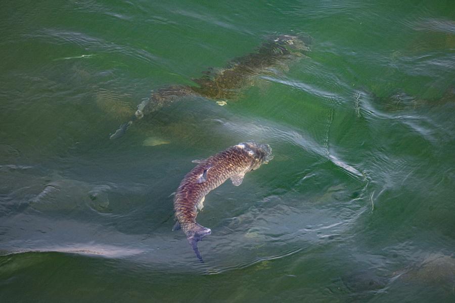葛洲ダム下流付近を泳ぐ魚。(宜昌=新華社記者/肖芸九)