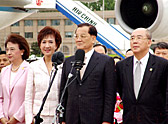 中国国民党の連戦主席率いる大陸部訪問団は28日午前11時15分、南京から北京に到着し、2日間の北京訪問をスタートした。中国共産党中央委員会台湾工作弁公室の陳雲林主任、北京市委員会の竜新民副書記らが空港で出迎えた。