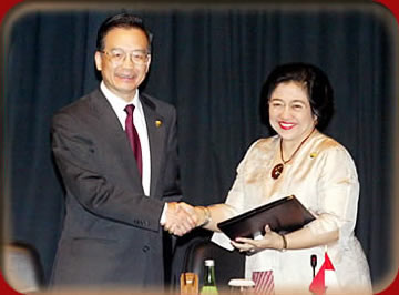 10 月7日 から8日まで、温家宝・国務院総理はインドネシア・バリ島で開かれた ASEAN (東南アジア諸国連合)首脳会議に出席した。政府は会議の席で『東南アジア友好協力条約』への加盟を発表。また『中華人民共和国と ASEAN 首脳の共同宣言』に署名し、「平和と繁栄に向けた戦略的パートナーシップ」を確立した。政府が ASEAN と戦略的パートナーシップに関する文書に署名したのは今回が初めて。